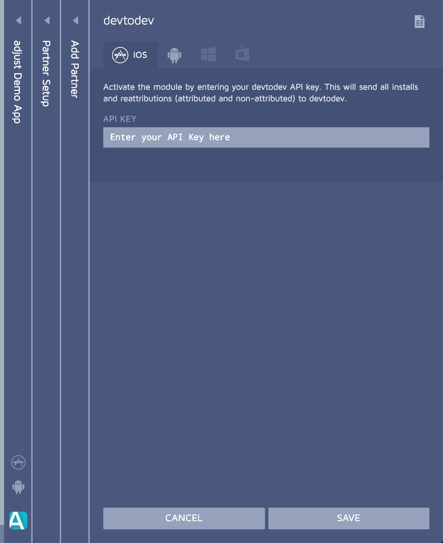 Official Adjust documentation for enabling devtodev partner module can be found here.