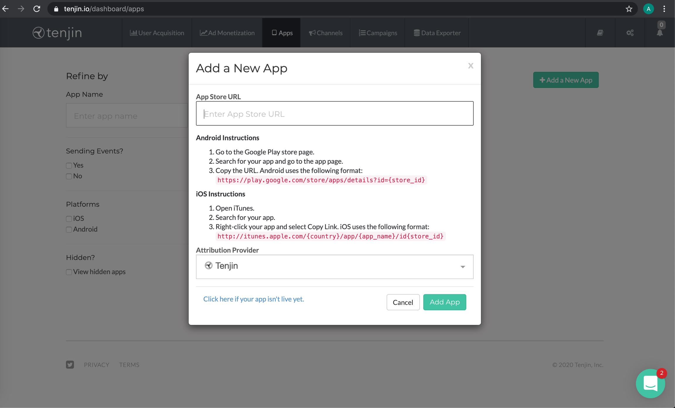 Add your app or edit an already existing app.
