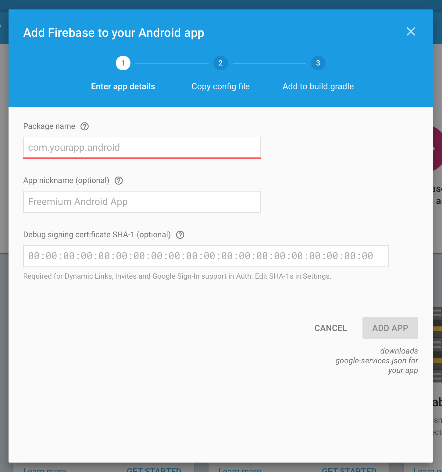 Obtaining configuration file for firebase push notifications
