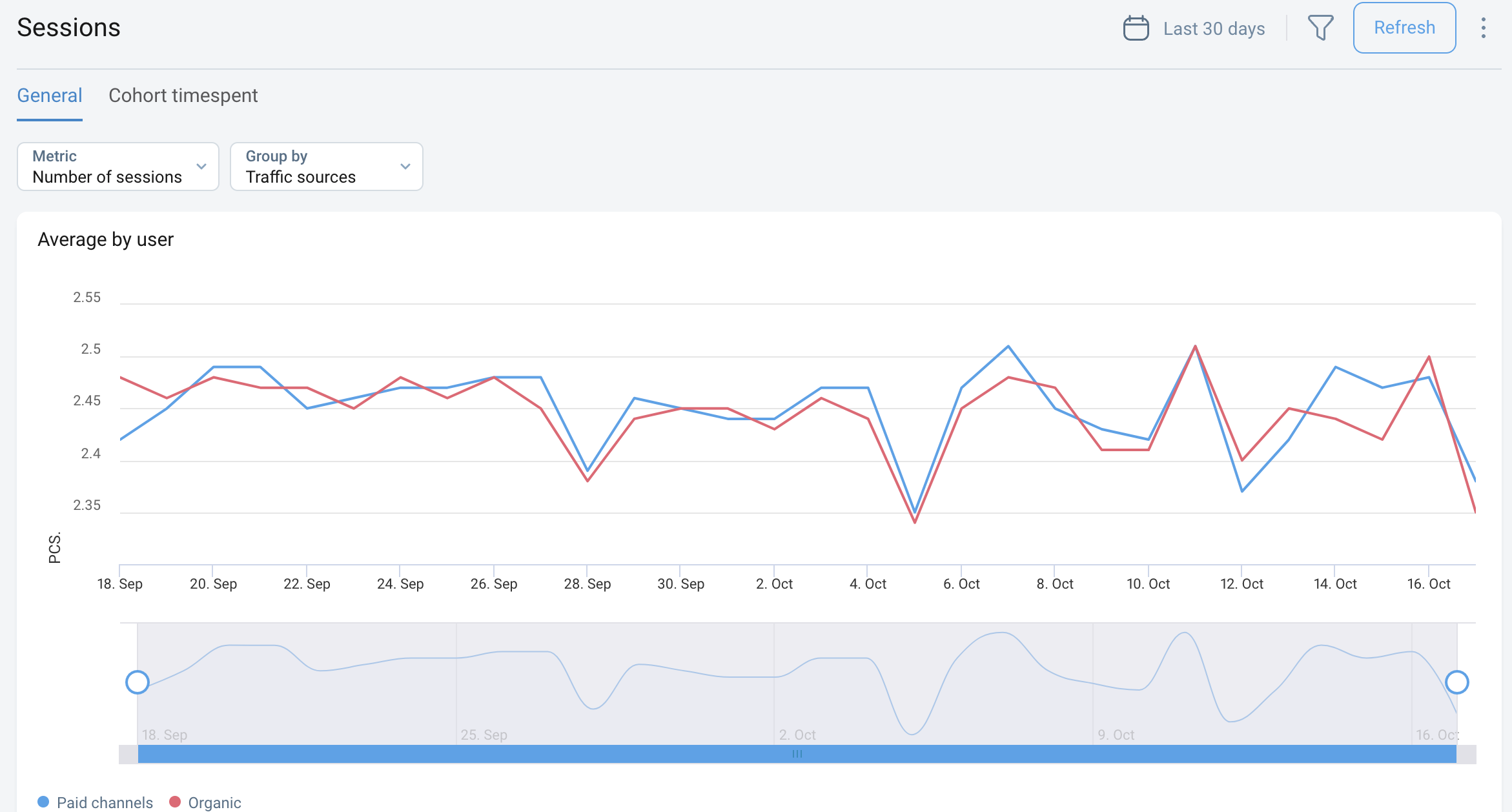 If necessary, we can also evaluate the length of sessions by selecting the Session duration metric.